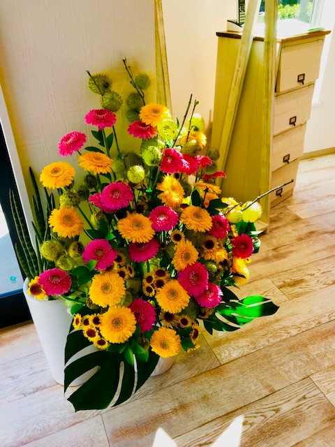 色鮮やかなお花が届き、癒しの空間に華やかさが加わりました。